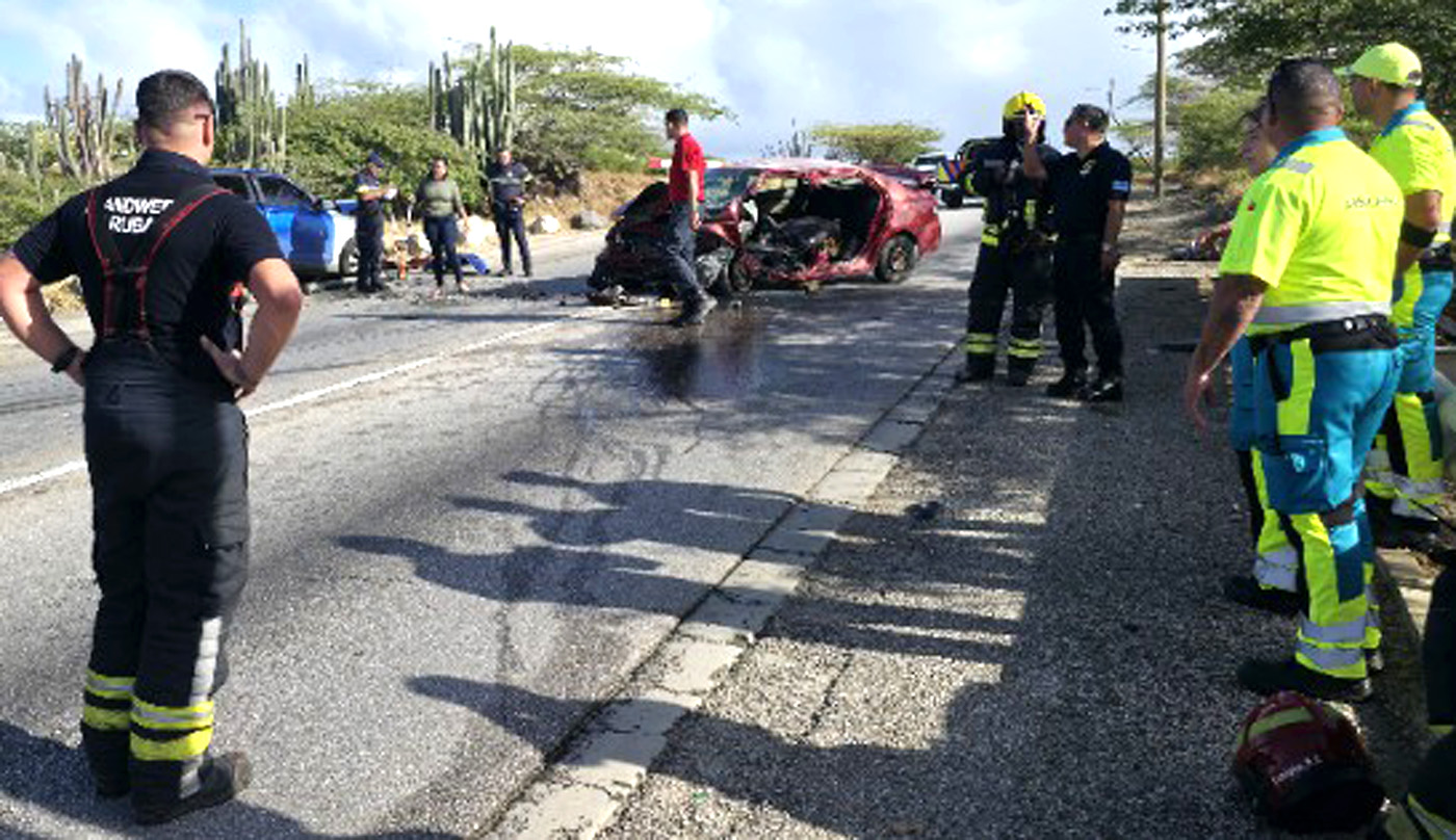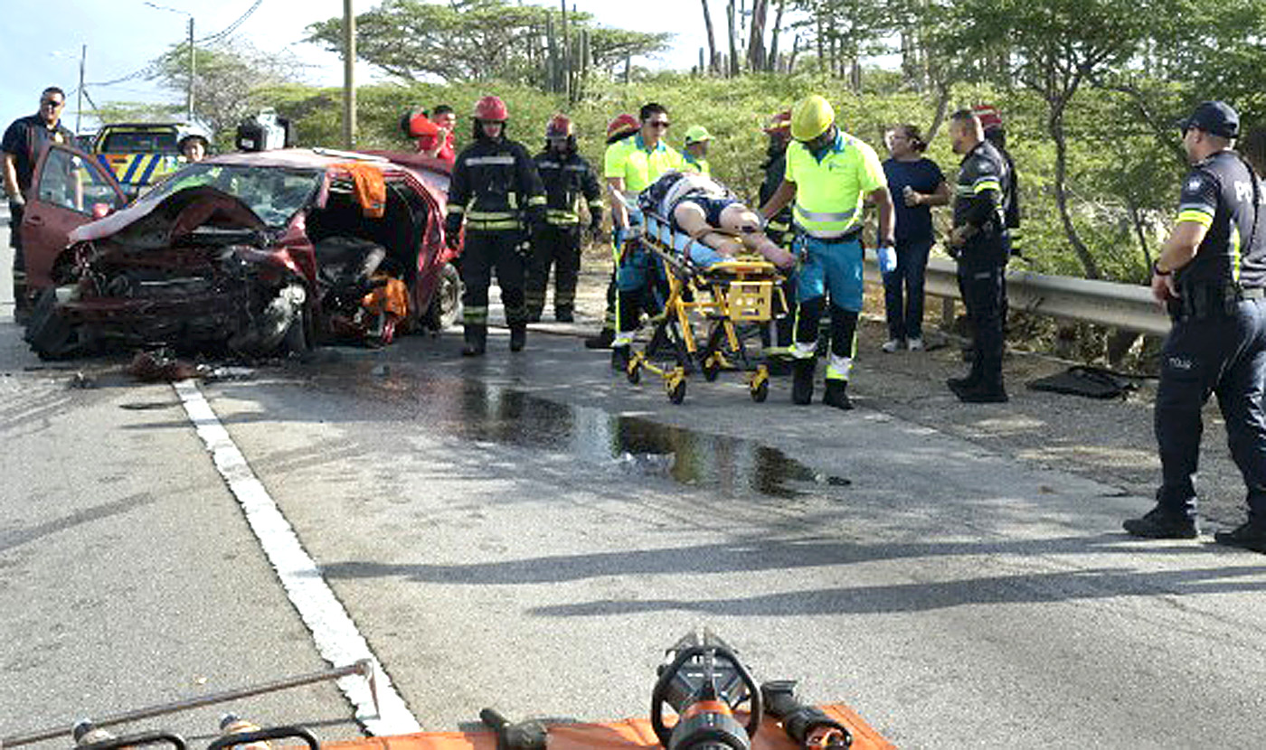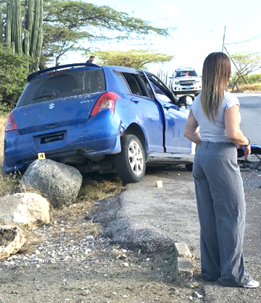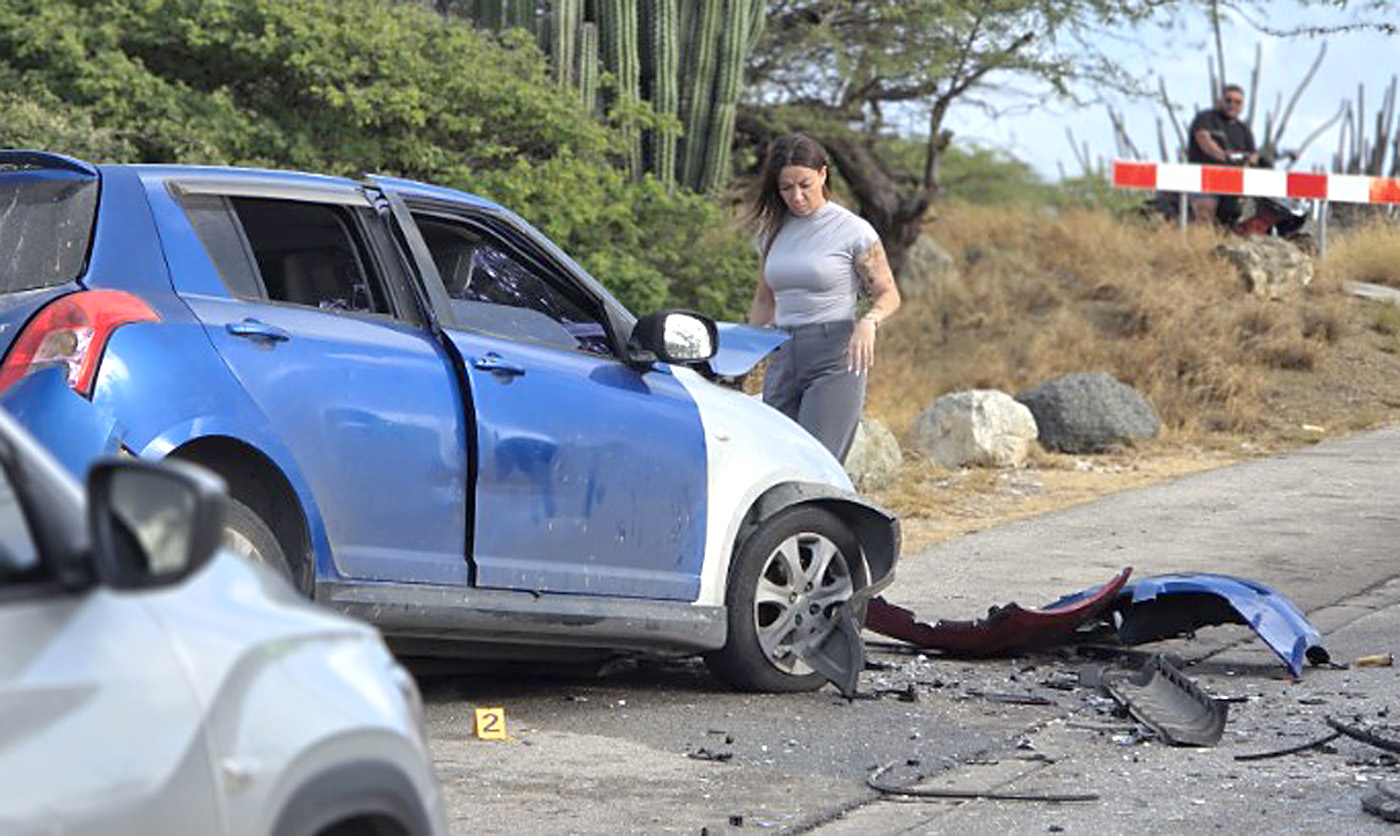 Polisnan a cera e pida caminda aki, for di cruzada di Mondi Fierno y tambe rotonde di Balashi, pa duna espacio pa personal di rescate por traha. E Yaris a keda mey-mey di caminda, y e Swift benta na banda riba acera.