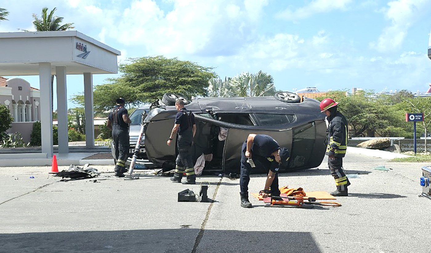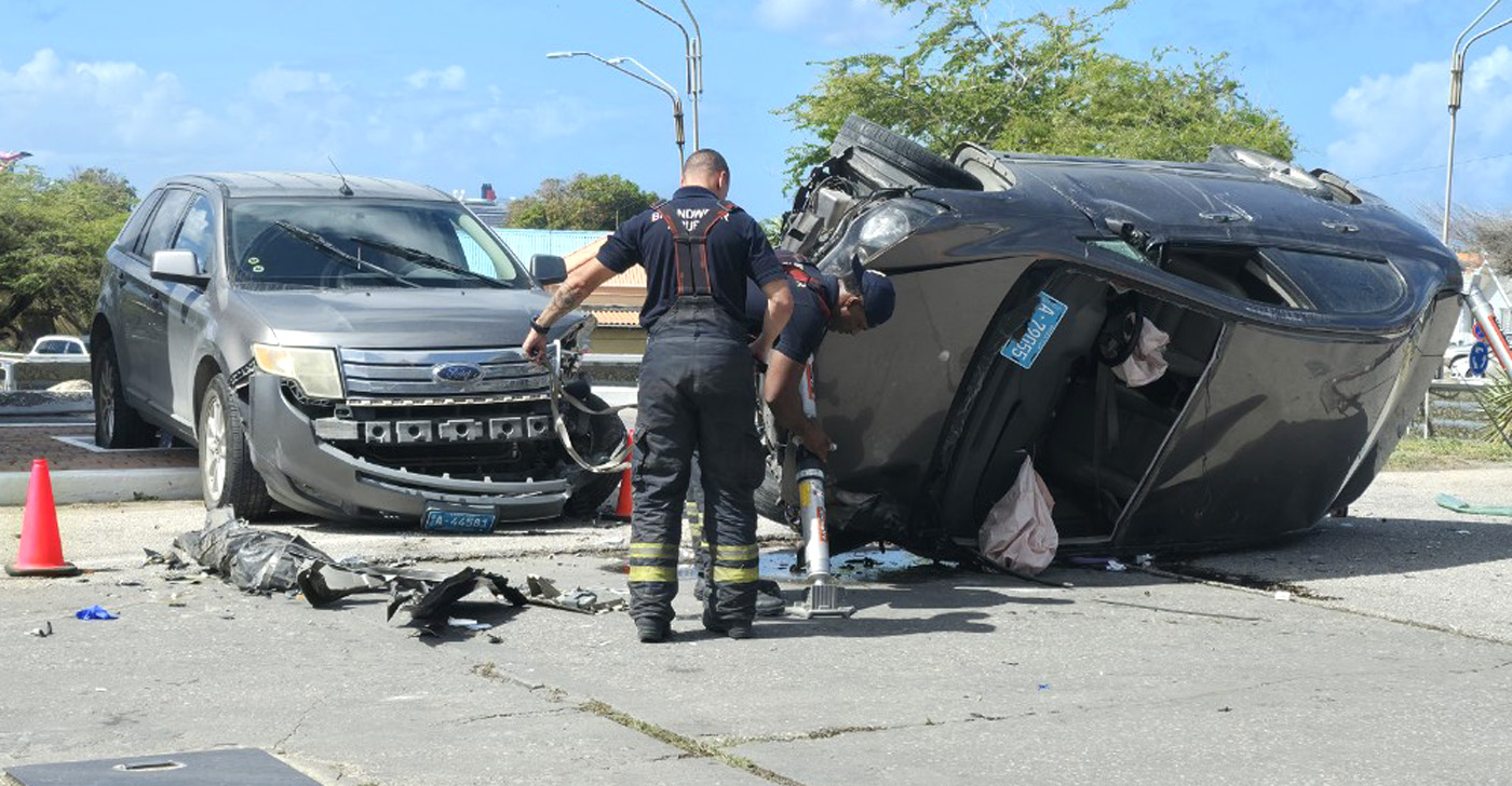 Bomberonan a yega, y mesora a uza tubonan special di sosten, pa asina kenter e auto un tiki pa asina por a saca e chauffeur di eyden. E persona a wordo poni riba caminda, y Paramediconan a stabiliza e persona, prome cu nan por a bay cu ne rumbo pa Servicio di Emergencia na Hospital.