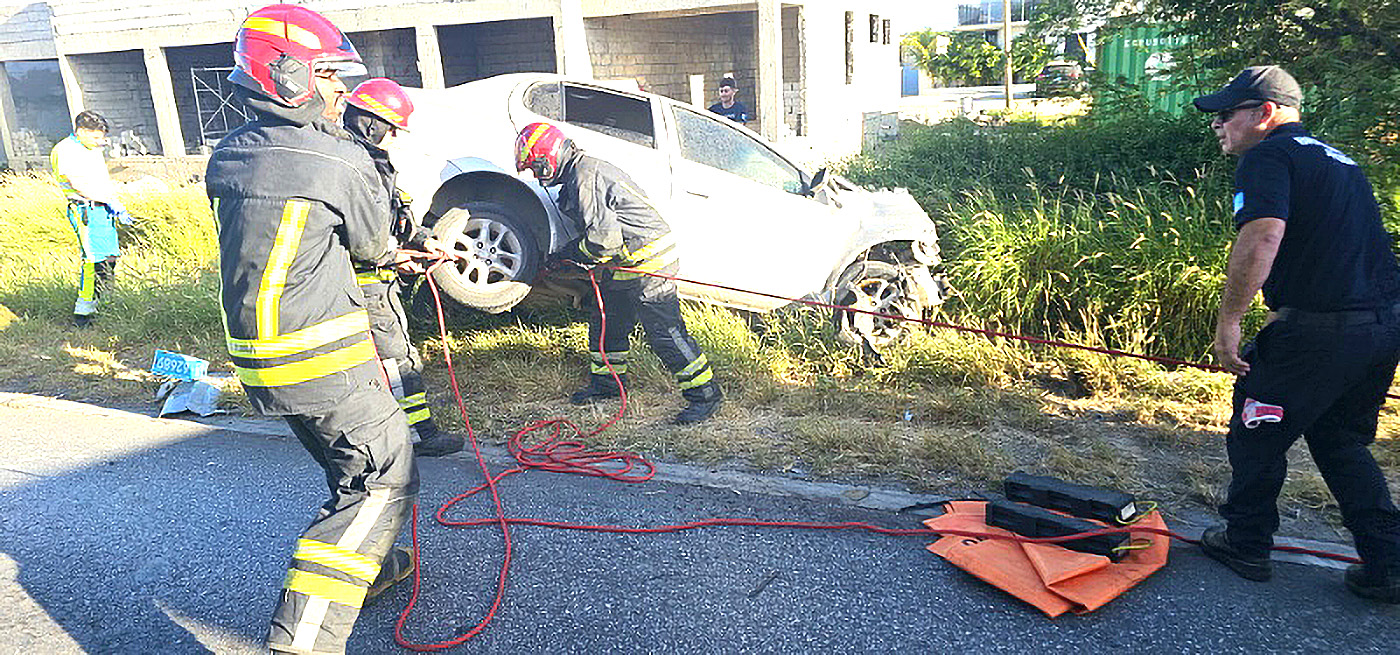 Polis cu a yega a solicita pa Ambulance tambe yega cu urgencia, y a pidi pa Brandweer bin cu Vehiculo di Rescate, pa por saca e dama cu tabata tin dolor. E porta banda di e chauffeur no kier a habri, y a warda riba e profesionalnan di Bombero pa habri esaki.