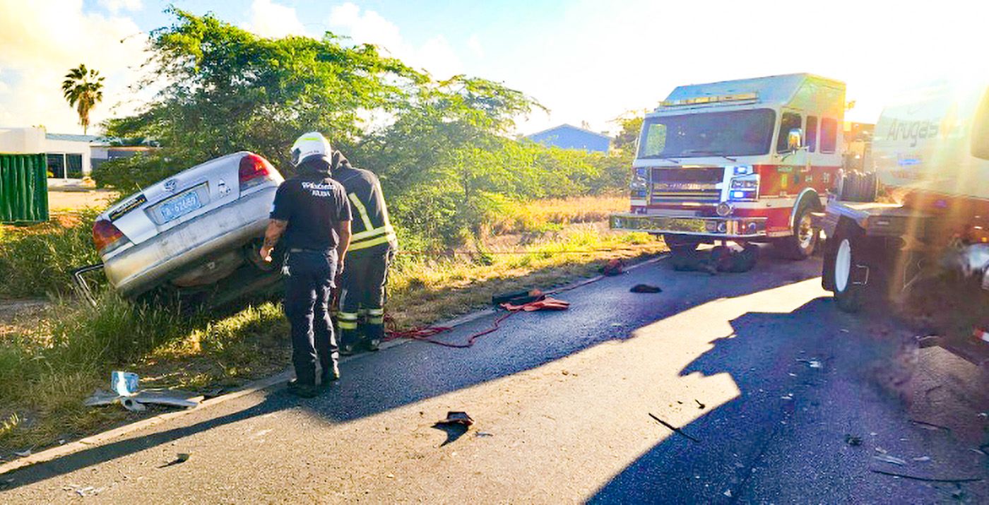 ORANJESTAD (AAN): Unidadnan di Polis como tambe vehiculo di rescate di Cuerpo di Bombero a wordo manda Dialuna mainta trempan pa caminda di Tanki Flip pa Pos Abao, debi cu un truck cu tanki grandi di Arugas a haye envolvi den un accident di trafico.