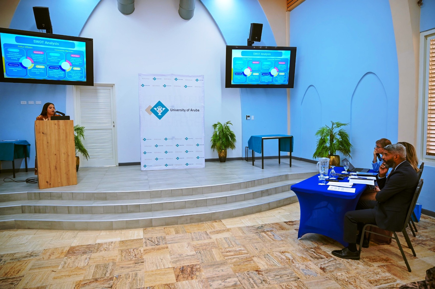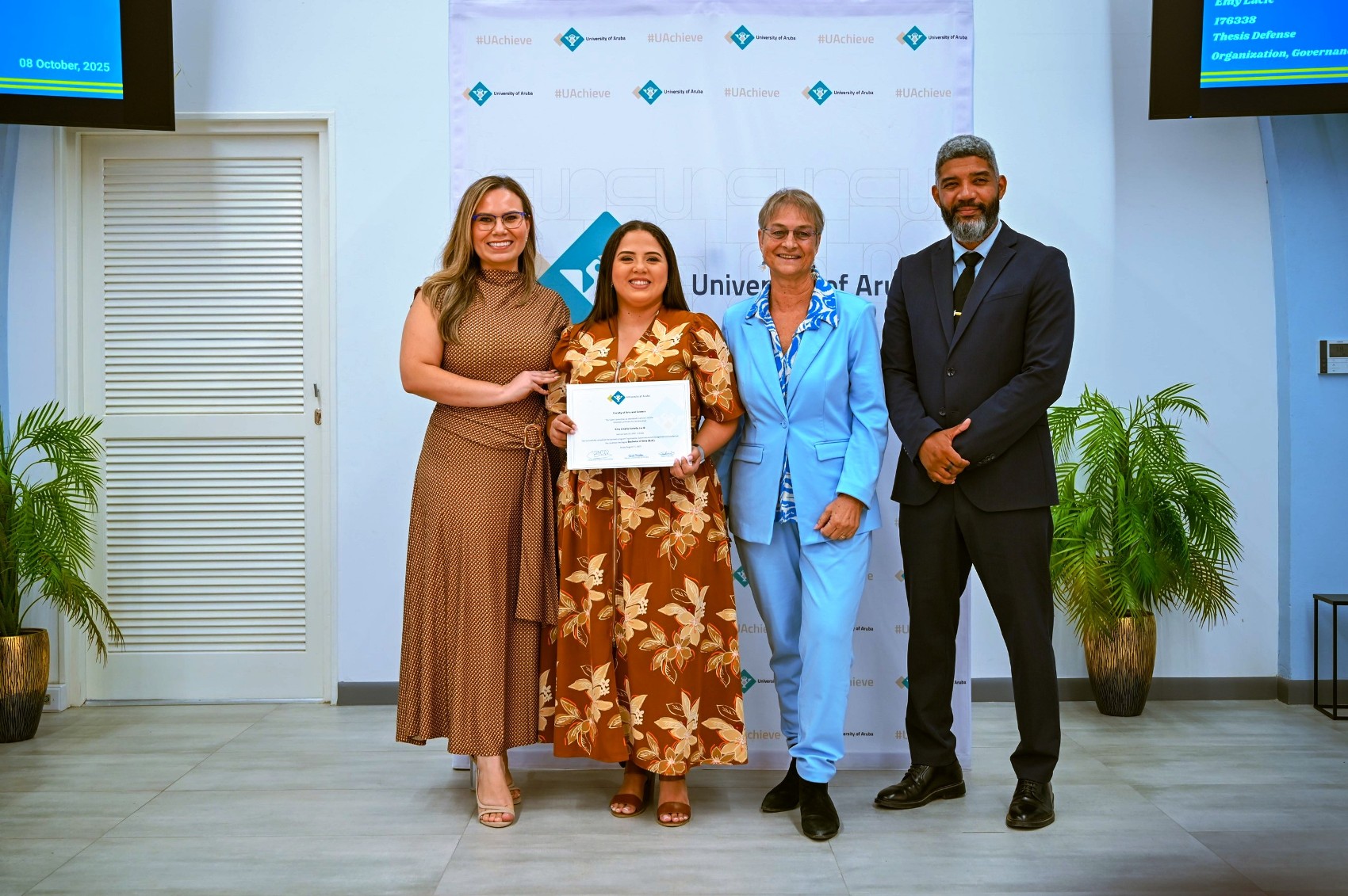 Siman pasa e prome studiante Bachelor di UA, Emy Lacle, den un bunita ceremonia a termina su tesis cu un cifra di 8,5 riba e tema di Community Policing na Aruba. Un resultado cu KPA ta orguyoso di dje.