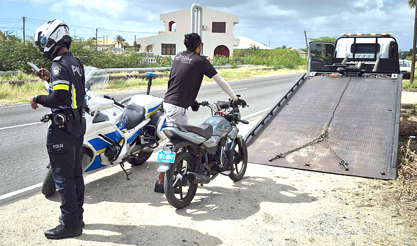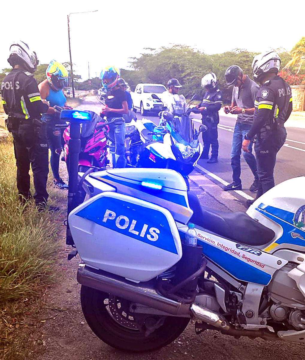 A controla varios vehiculo tanto brommer y auto cu a produci den total 6 brommer a wordo kita for di caminda pa no tin nan documento na ordo. Varios motociclista a ricibi boet halto pa diferente infraccion den trafico y un brommer a wordo tuma den beslag pa hop y haci diferente maniobranan cu tabata trece trafico den peliger.