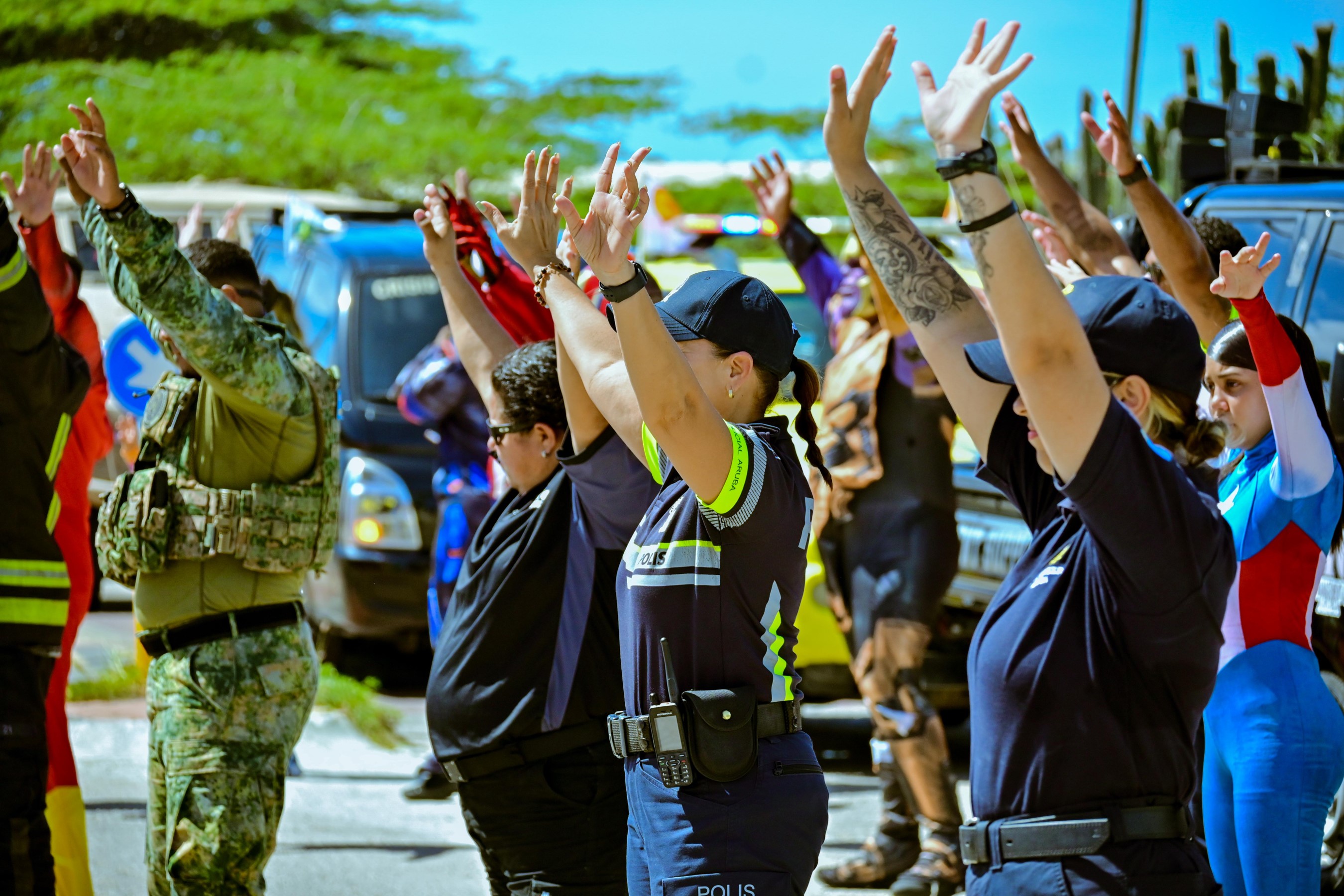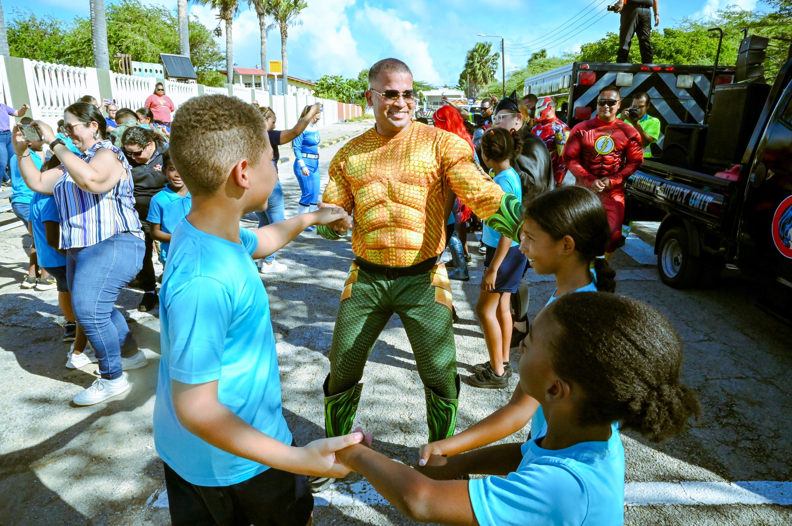 ORANJESTAD (AAN): Riba dia internacional di derechonan di mucha, un biaha mas Cuerpo Policial Aruba a participa na e grandioso “Everyday Superheroes Parade 2025”.