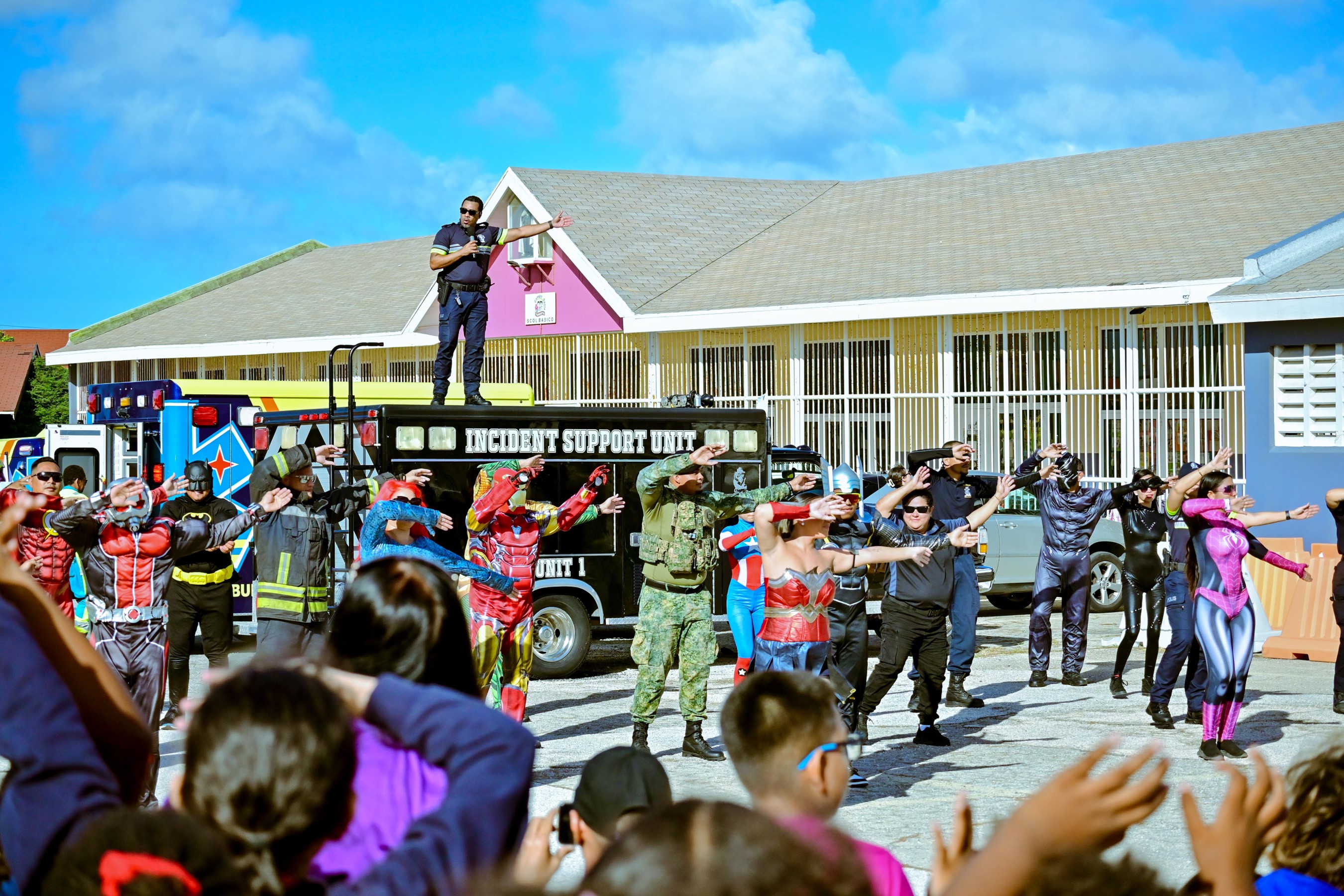 Tur aña Polis conhuntamente cu tur autoridad di Pais Aruba manera: Ambulance, Bombero, Marinies Kazerne, kustwacht y CMO a baila, goza y trece alegria pa nos muchanan.