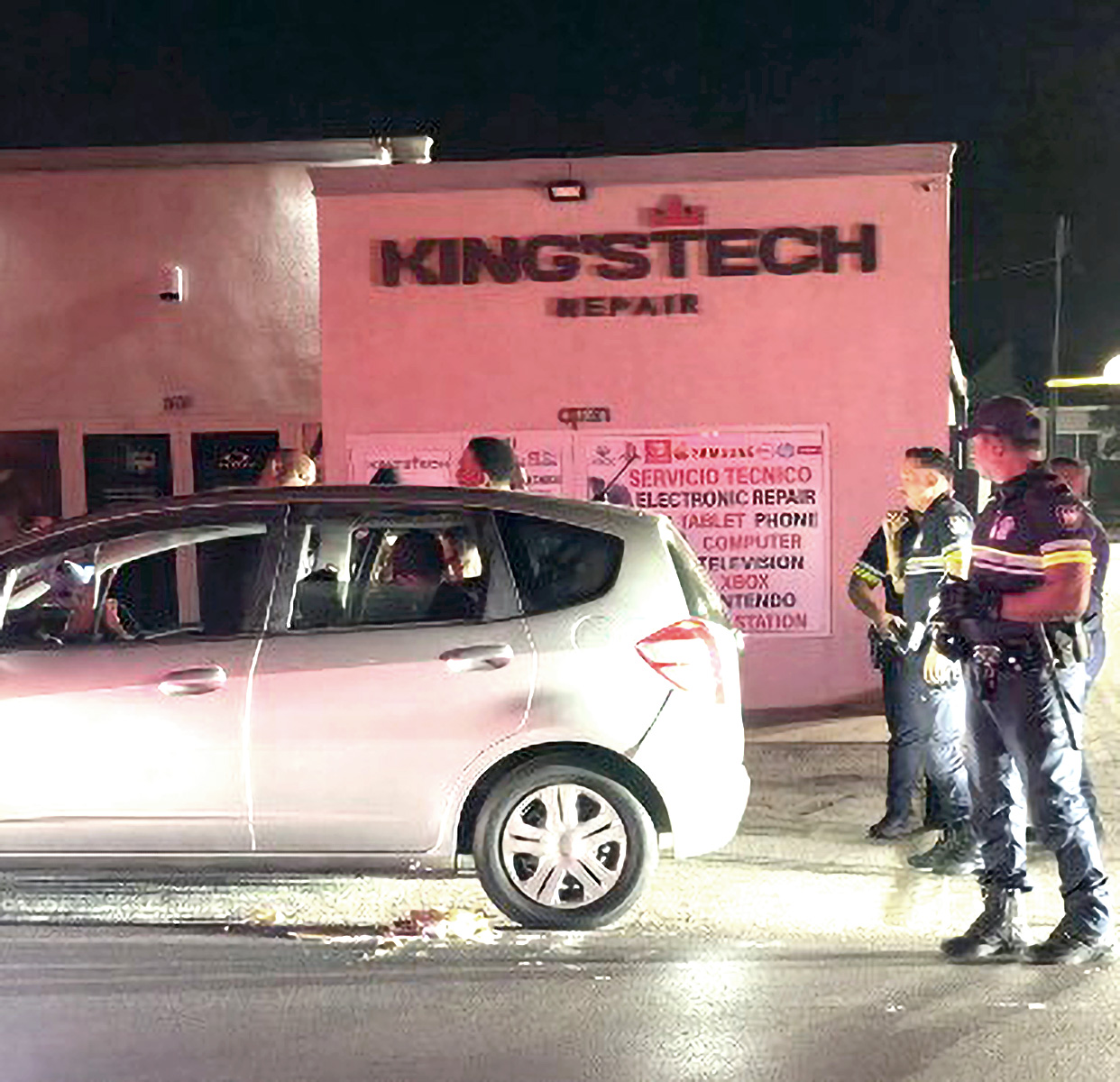 E agentenan a yega cerca di un auto compacto, esta Honda Fit y den dje a topa cu hende herida, unda ta papia di hincamento.