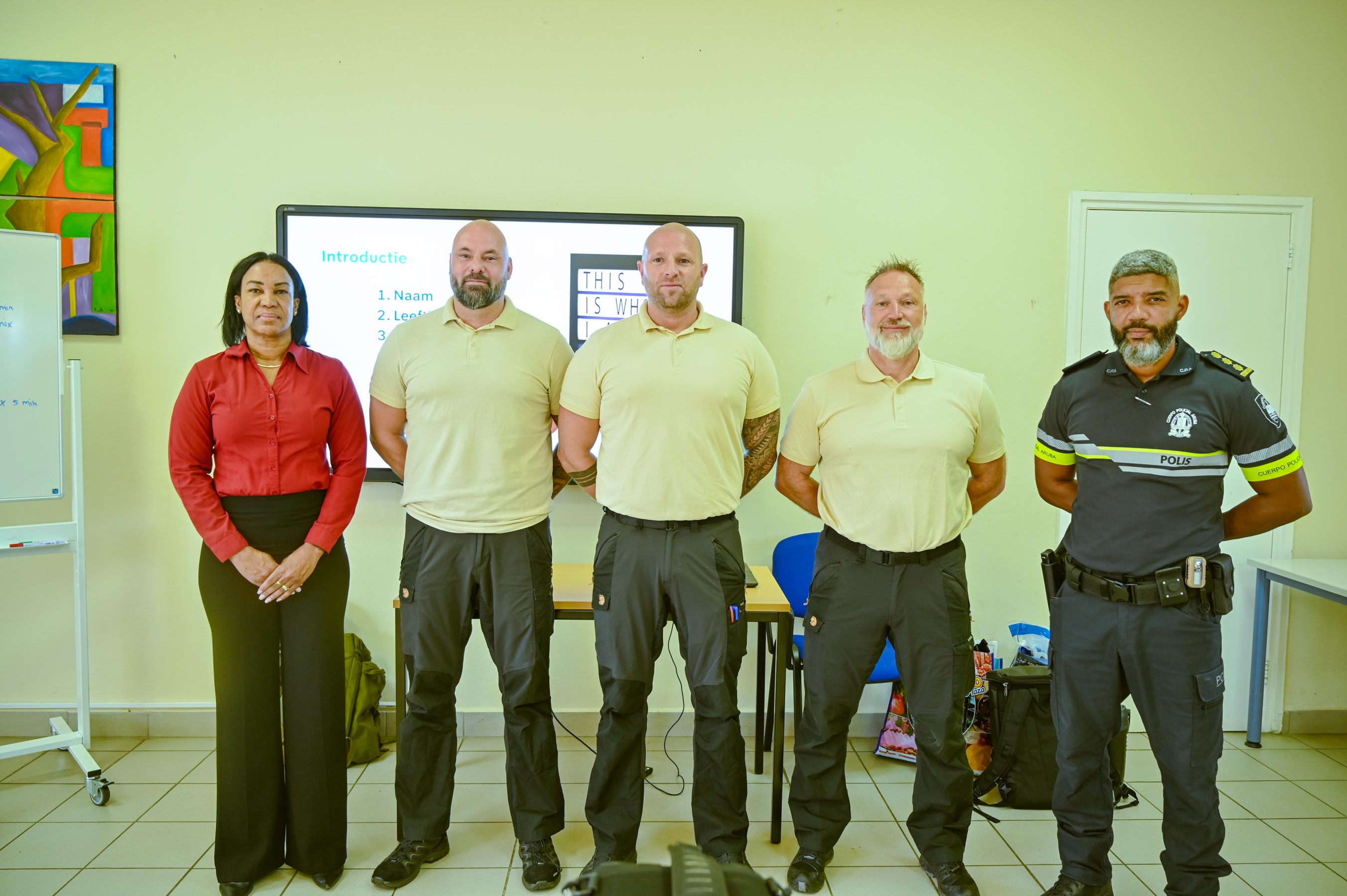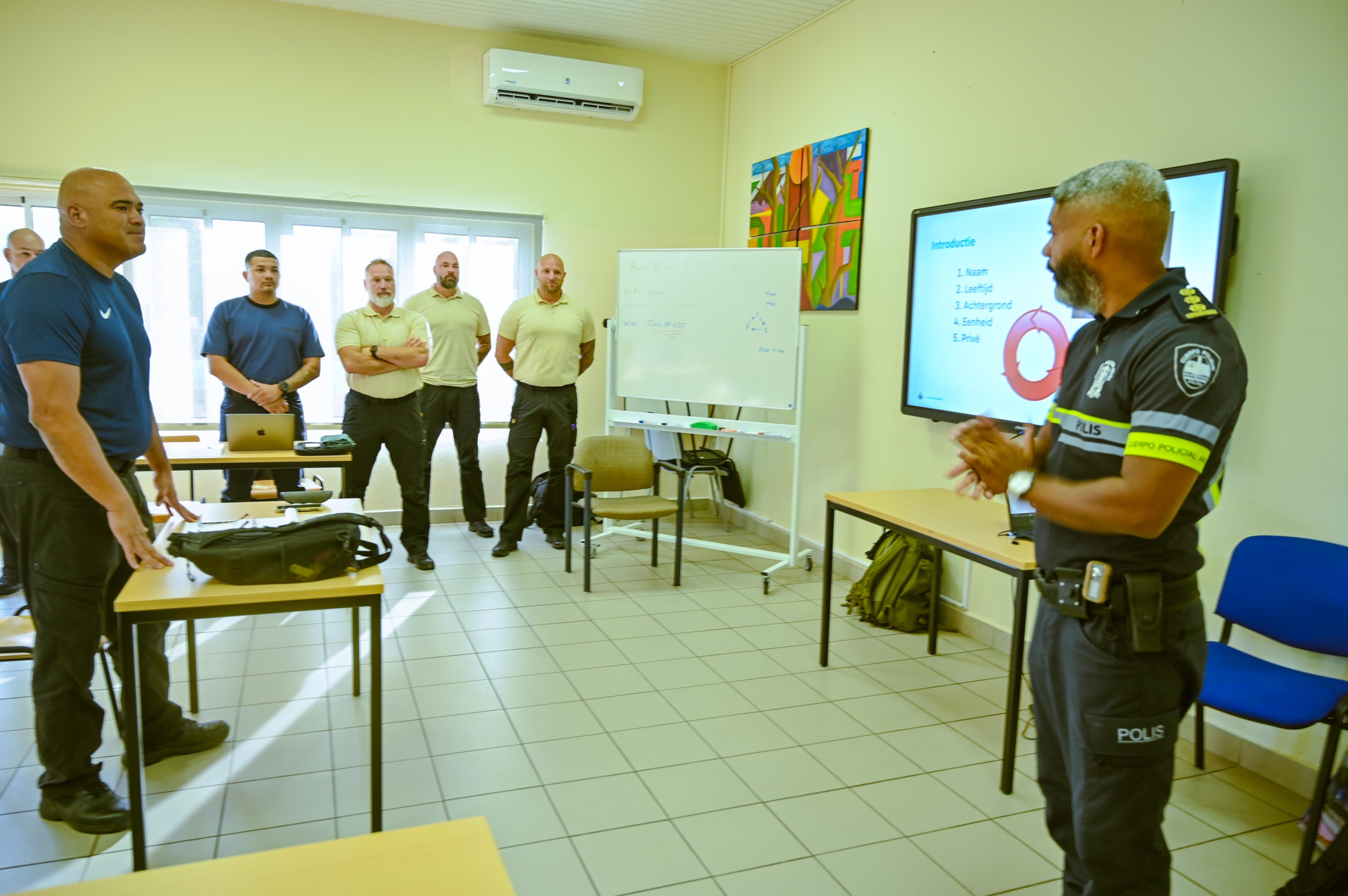 ORANJESTAD (AAN): Den cuadro di fortalece e conocemento riba e tema di docente pa IBT, siman pasa Altocomisario di Polis Ramon Arnhem den presencia di hefe di Scol pa Polis E.J. Watty Vos, señora Sherina Arrindell a haci inicio di e curso.
