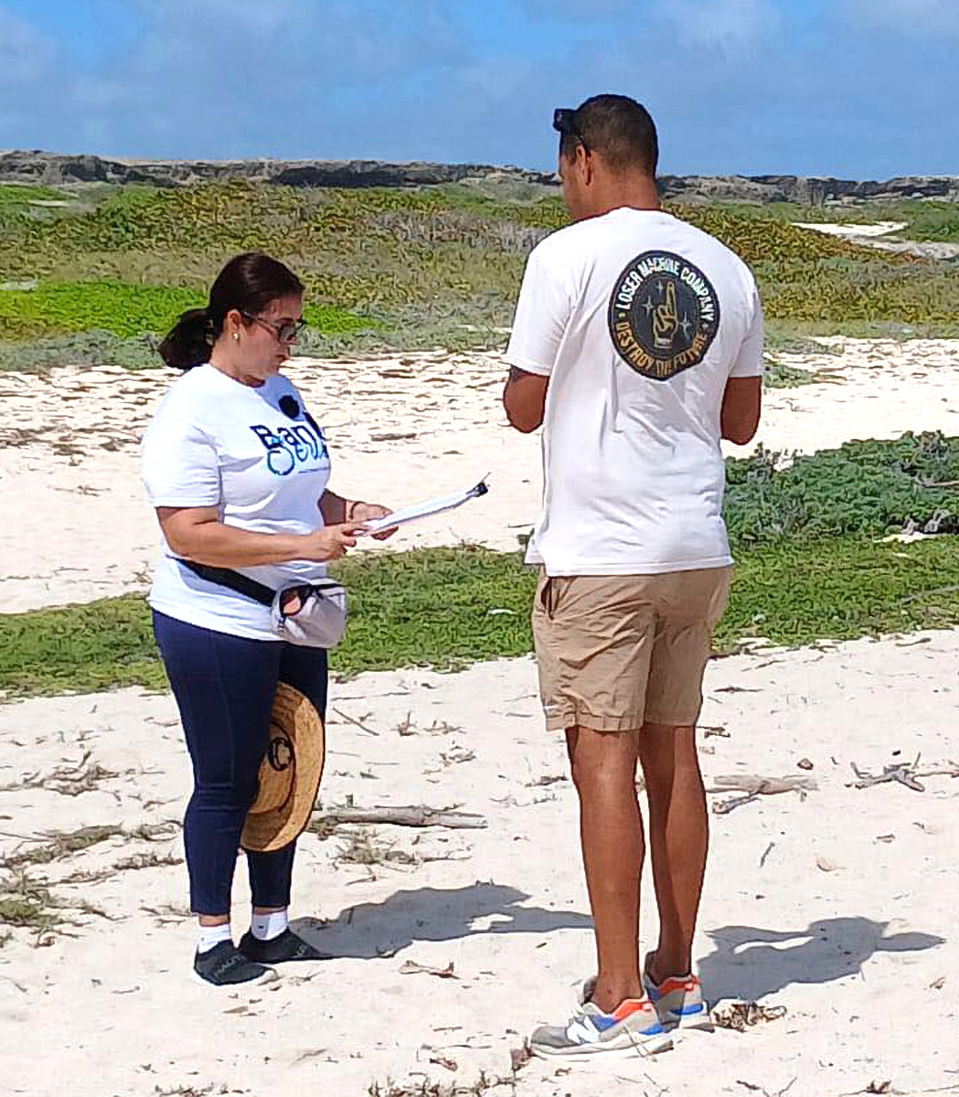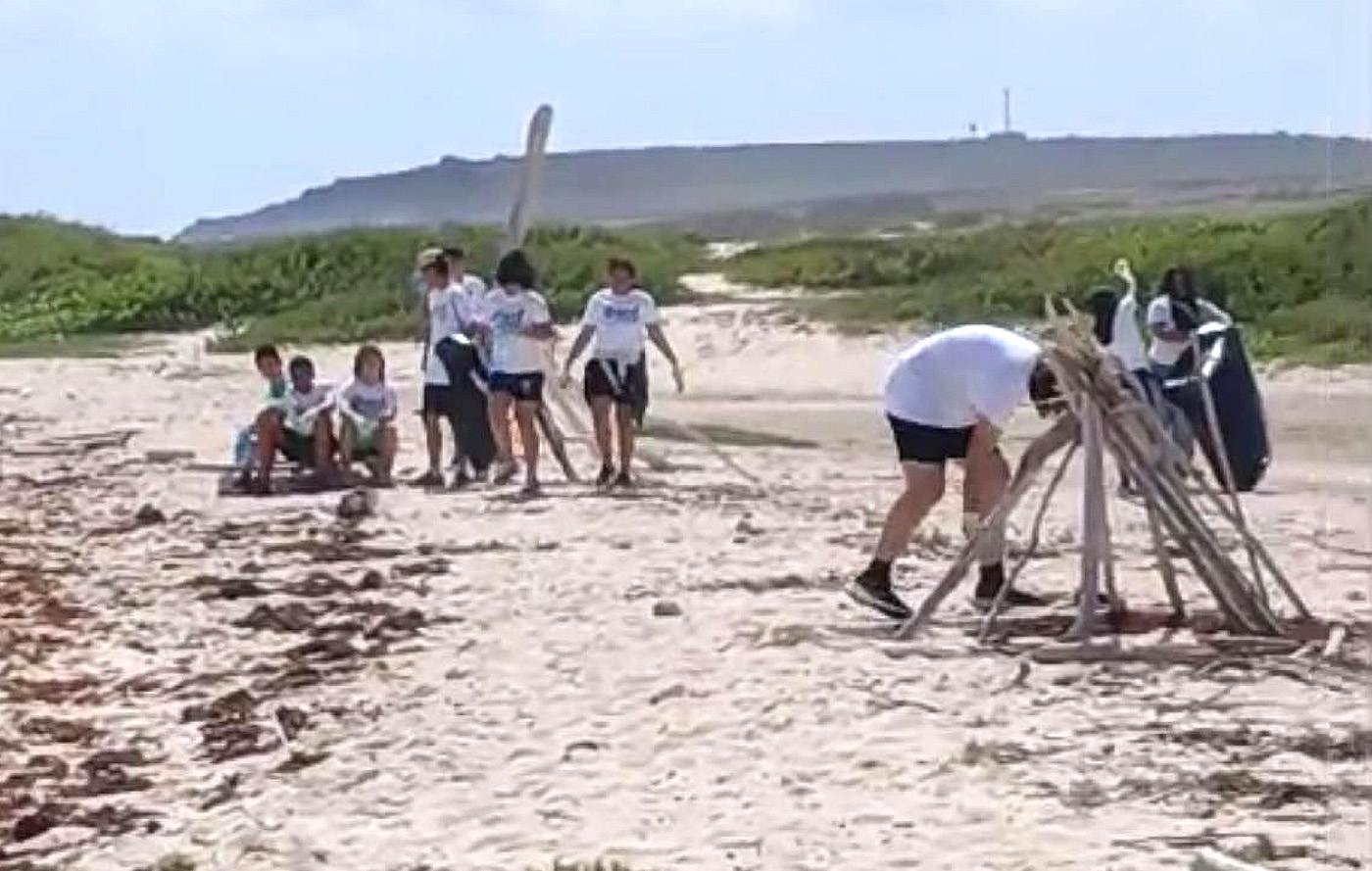 Nan a yega trempan cu nan handschoen y material pa asina a pasa recoge tur sushedad cu nan por a topa cu ne riba beach y mey-mey di e matanan. E tabata un satisfaccion enorme pa mira nan haci e trabao aki cu tabata hopi duro, special riba santo blanco.