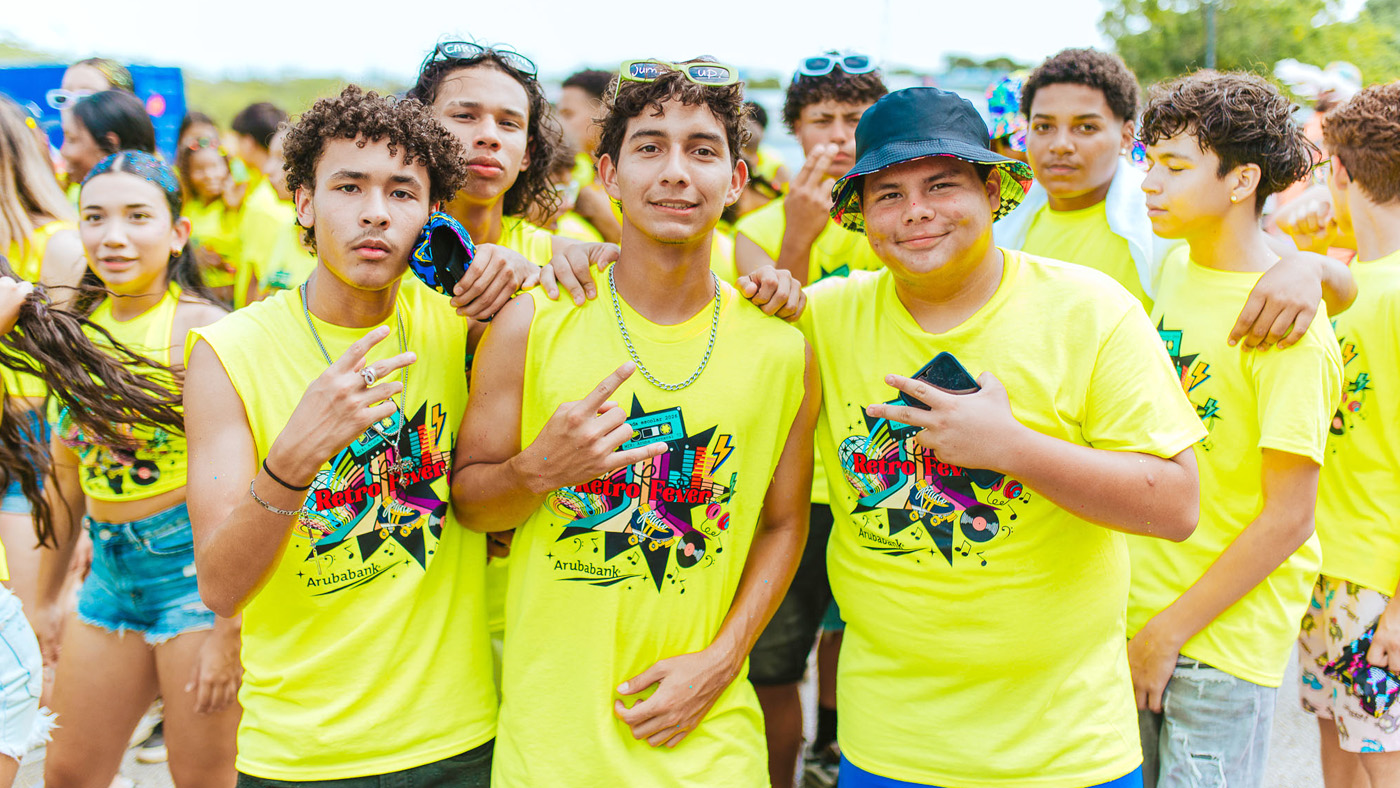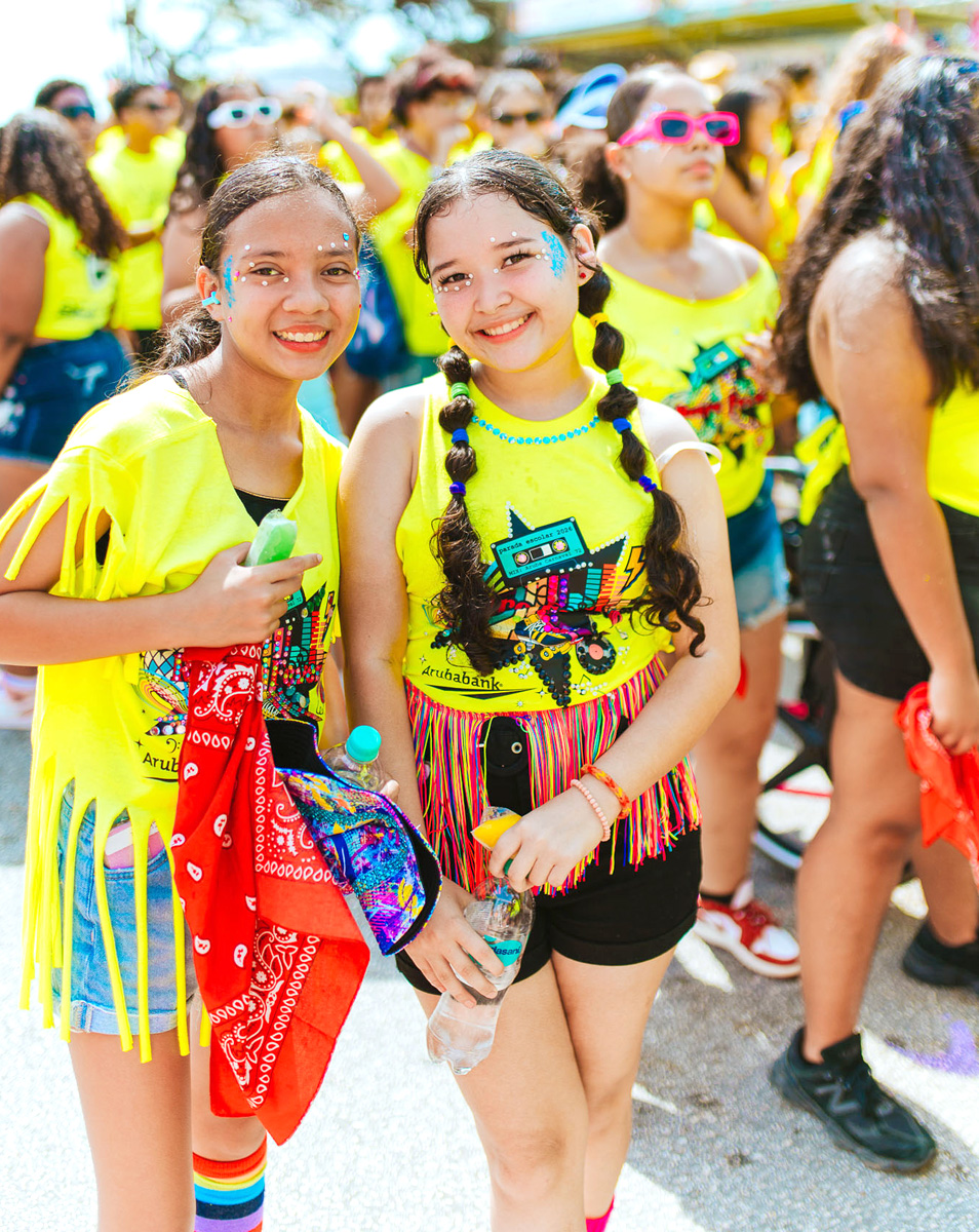 e Parada Escolar Scolnan Secundario den cayanan di Oranjestad, un evento cu ta celebra hubentud, cultura y e spirito vibrante di Carnaval di Aruba.