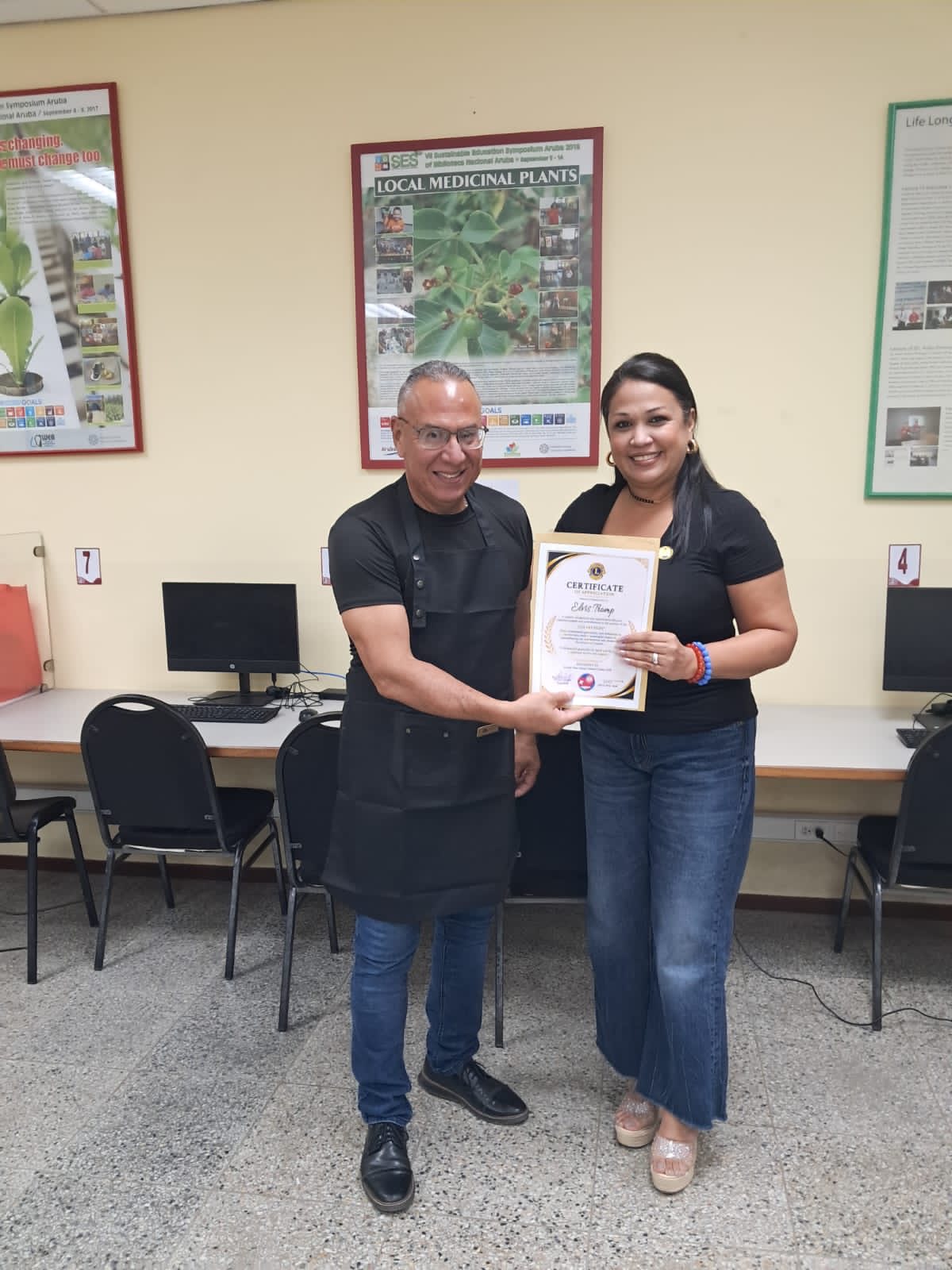 Presidente di e club, Lion Aliyuri Arends, a presenta Elvis Tromp cu un Certificado di Aprecio. El a expresa cu e contribucion di Elvis ta refleha e berdadero amor pa servicio, creatividad y compasion. Aruba One Happy Island Lions Club ta expresa su sincero gratitud pa su impacto positivo riba e club y comunidad.