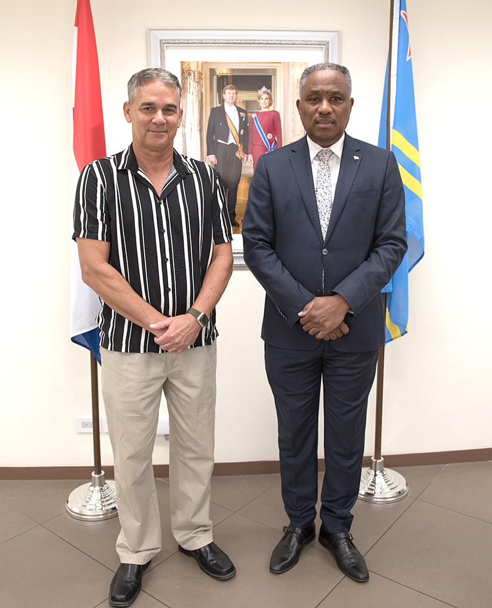 ORANJESTAD (AAN): Den fin di siman, Ministro Arthur Dowers a ricibi sr. Patrick Henriquez na oficina pa un ceremonia special.