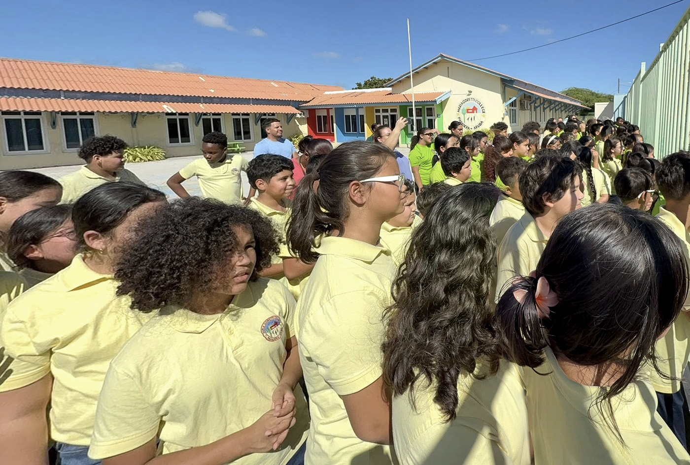 ORANJESTAD (AAN): Diaranson riba e prome dia di scol pa aña 2026, tanto e docente- y alumnonan di e scol basico Maria Goretti College na Paradera a ricibi bendicion di Dande.