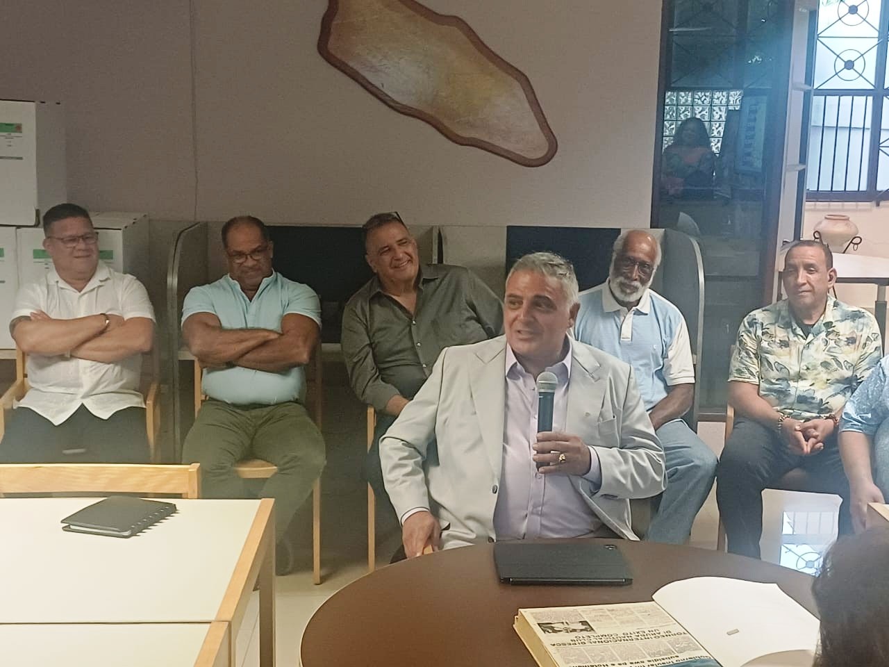 organisa un anochi special, na unda invitadonan di un manera conversatorio, a sinta den un ambiente ameno pa recorda y comparti experiencianan unico durante añanan di DIARIO. E exposicion special titula “45 aña di Matutino DIARIO”, ta forma parti di e conversatorio “Comparti nos Herencia” ta habri pa publico for di 3 te 14 di november 2025, na e edificio di Biblioteca Nacional Aruba, Bachstraat 5, Oranjestad. Orario di e exposicion ta: Dialuna y Diaranson di 8:00 a.m. – 5:00 p.m. / Diamars, Diahuebs y Diabierna di 8:00 a.m – 5:00 p.m.