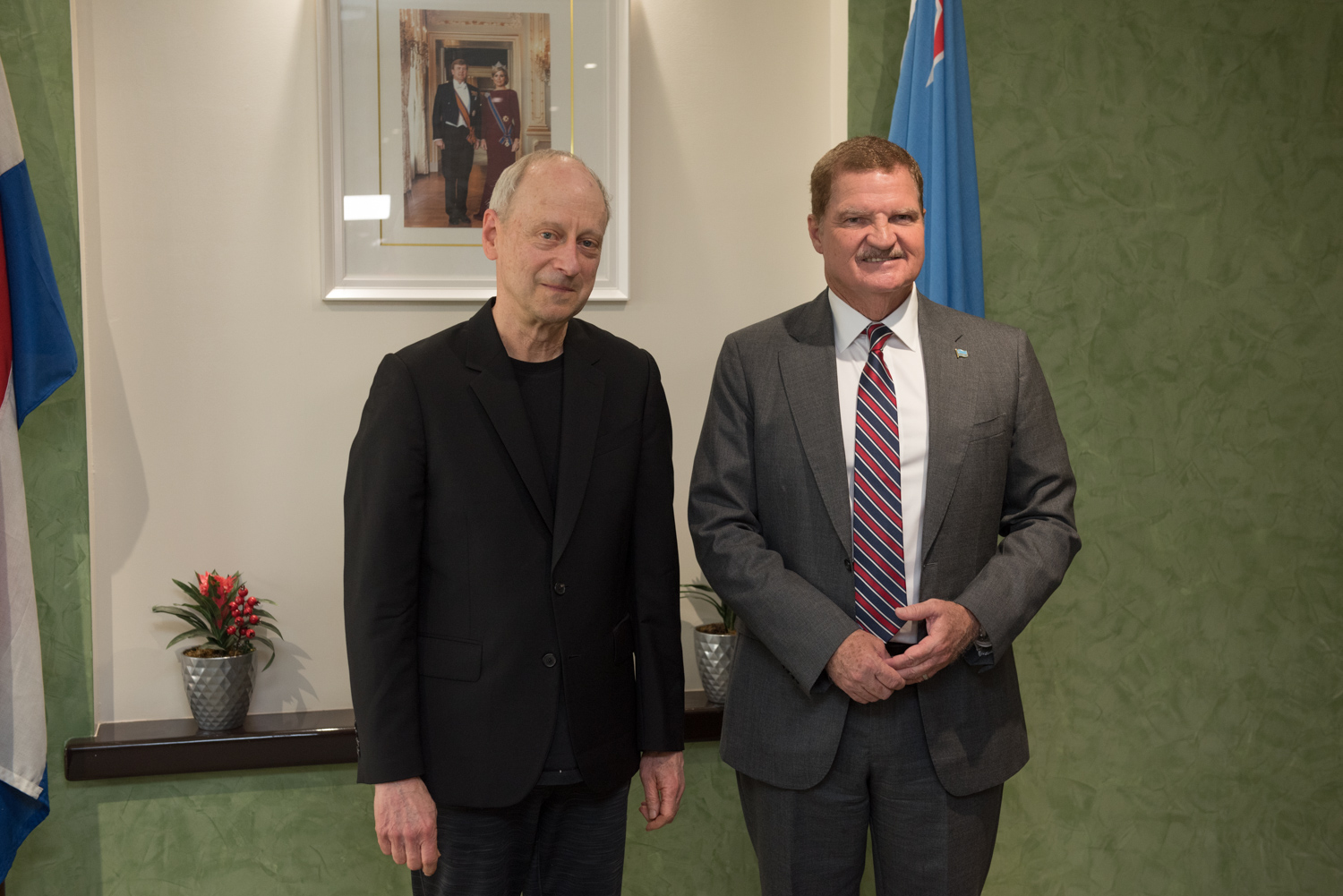ORANJESTAD (AAN): Diamars merdia, Prome Minister mr. Mike Eman, a ricibi Profesor di Filosofia Gubernamental y Politico y autor mundialmente reconoci, Michael Sandel,