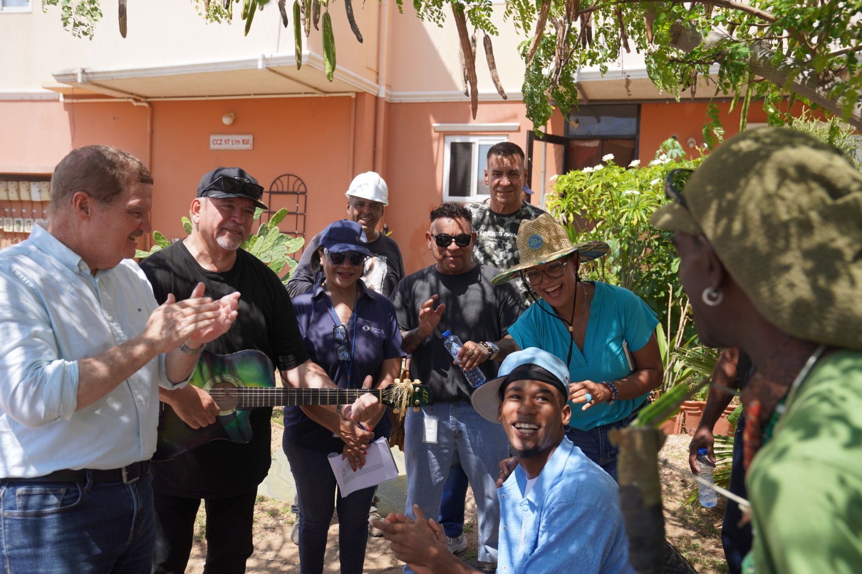 Cada porta cu a habri tabata un abraso y sonrisa genuino cu tabata indica e aceptacion di e esfuerso cu ta hibando pa embeyece cada bario bek. A duna man mesora pa recoge locual cu mester tira afo y asina cuminsa deshaci di algun desperdicio den e bario.