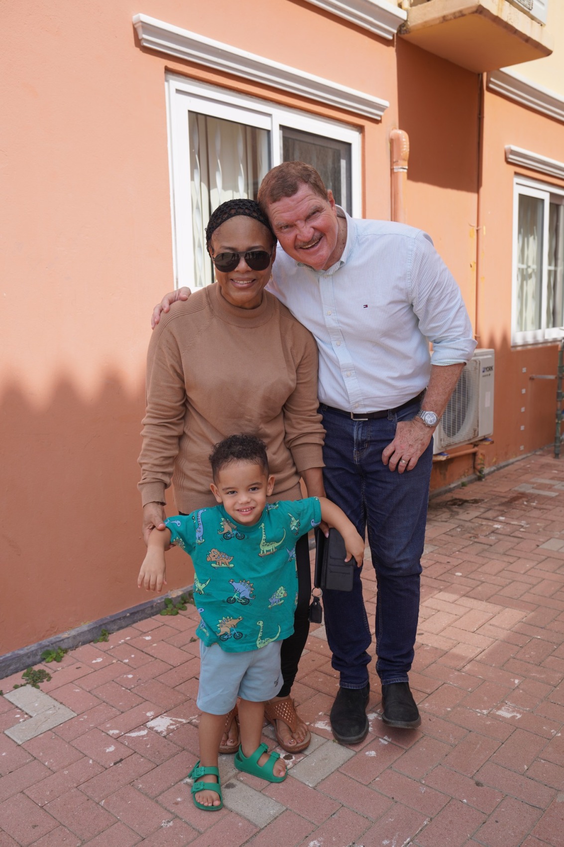 Prome Minister mr. Mike Eman, den oranan trempan di mainta, a haya un caluroso bonbini di e habitantenan di Cura Cabay Zuid cu tabata sumamente contento di por tin su presencia den bario.