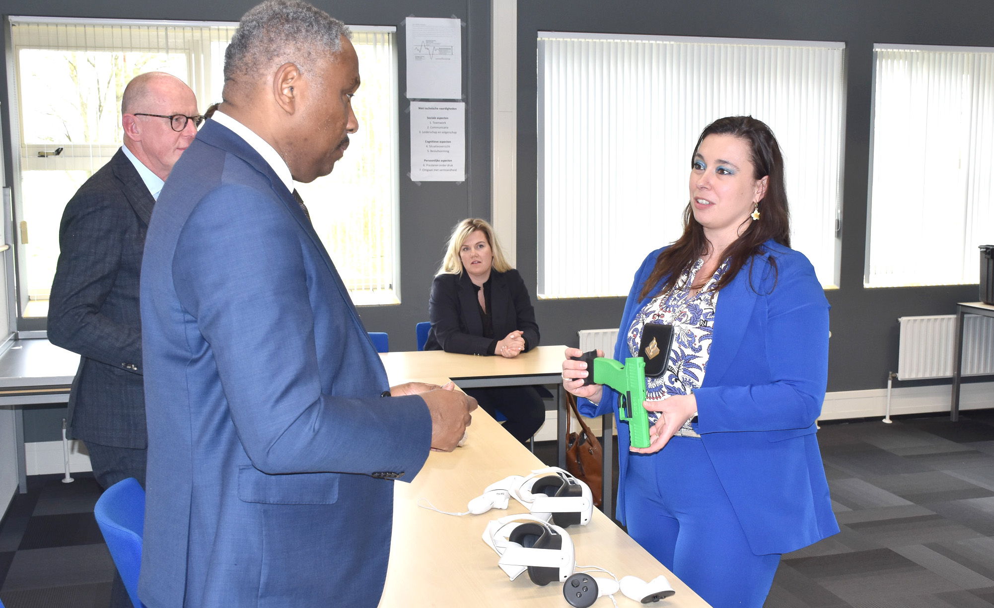 ORANJESTAD (AAN): Pa finalisa un serie di reunionnan importante y encuentronan strategico na Hulanda, Minister di Husticia mr. drs. Arthur Dowers a haci un bishita na Politieacademie Ossendrecht, na unda el a ricibi un presentacion amplio di director Leonard Kok y coordinador pa Caribe Jan Willem Ruts.