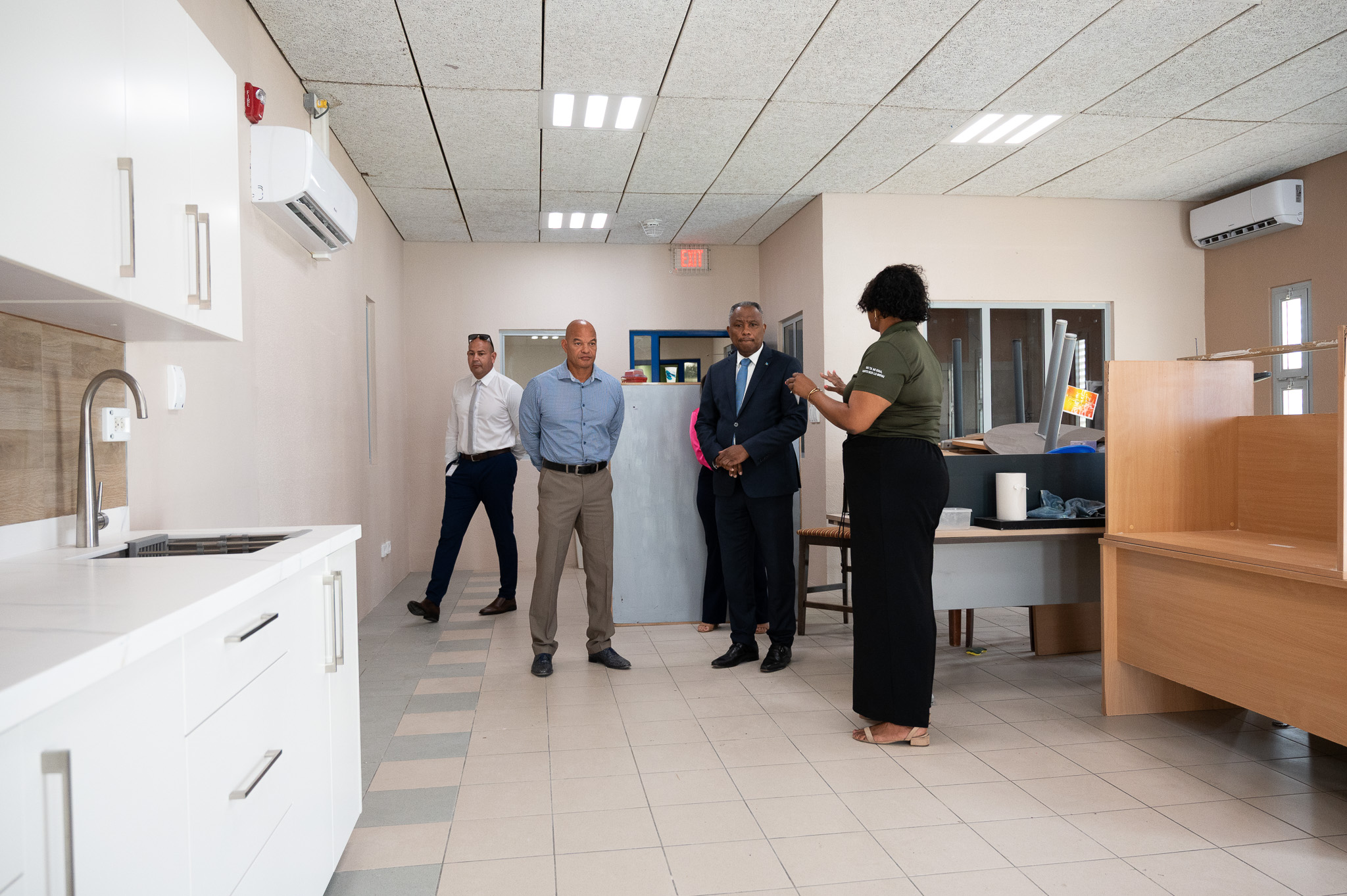 ORANJESTAD (AAN): Diamars mainta, Minister di Husticia, Integracion, Transporte Publico y Energia, mr. drs. Arthur Dowers, a haci un bishita na Centro Orthopedagogico Dakota den contexto di celebracion di Dia di Himno y Bandera. Durante e bishita, e minister a tuma e oportunidad pa inspecciona e trabaonan di renobacion cu a cuminsa algun siman pasa, y a expresa satisfaccion cu e progreso visibel, cu e cushinanan awor completamente cla.