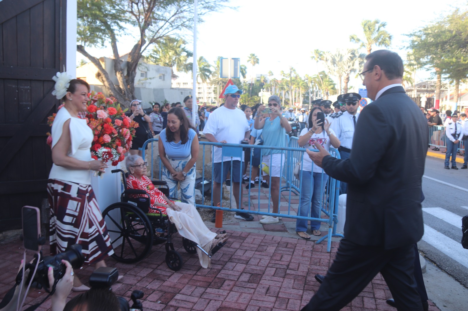y por a mira cantidad di hende banda di Gabinete di Gobernador, pa mira e Rey di cerca, y saca potret di dje, ora el a sali for di Gabinete hunto cu Gobernador Alfonso Boekhoudt, y un delegacion cu a compañe.