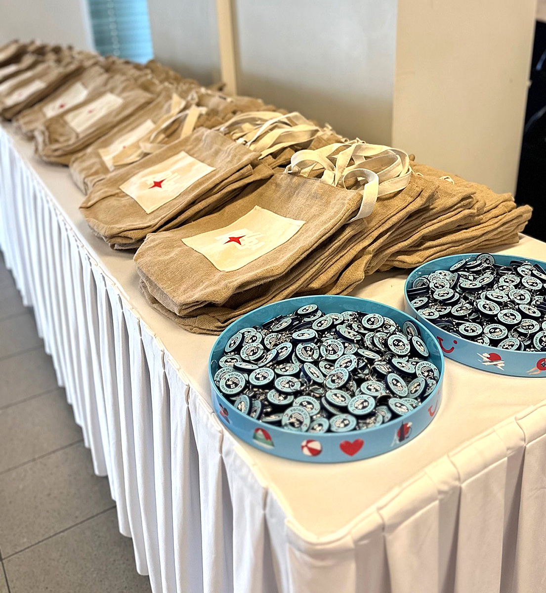 Prome cu salida for di Amsterdam, un delegacion di TUI y Schiphol a conmemora e momento aki, y pasaheronan a ricibi un recuerdo di e vuelo special aki.