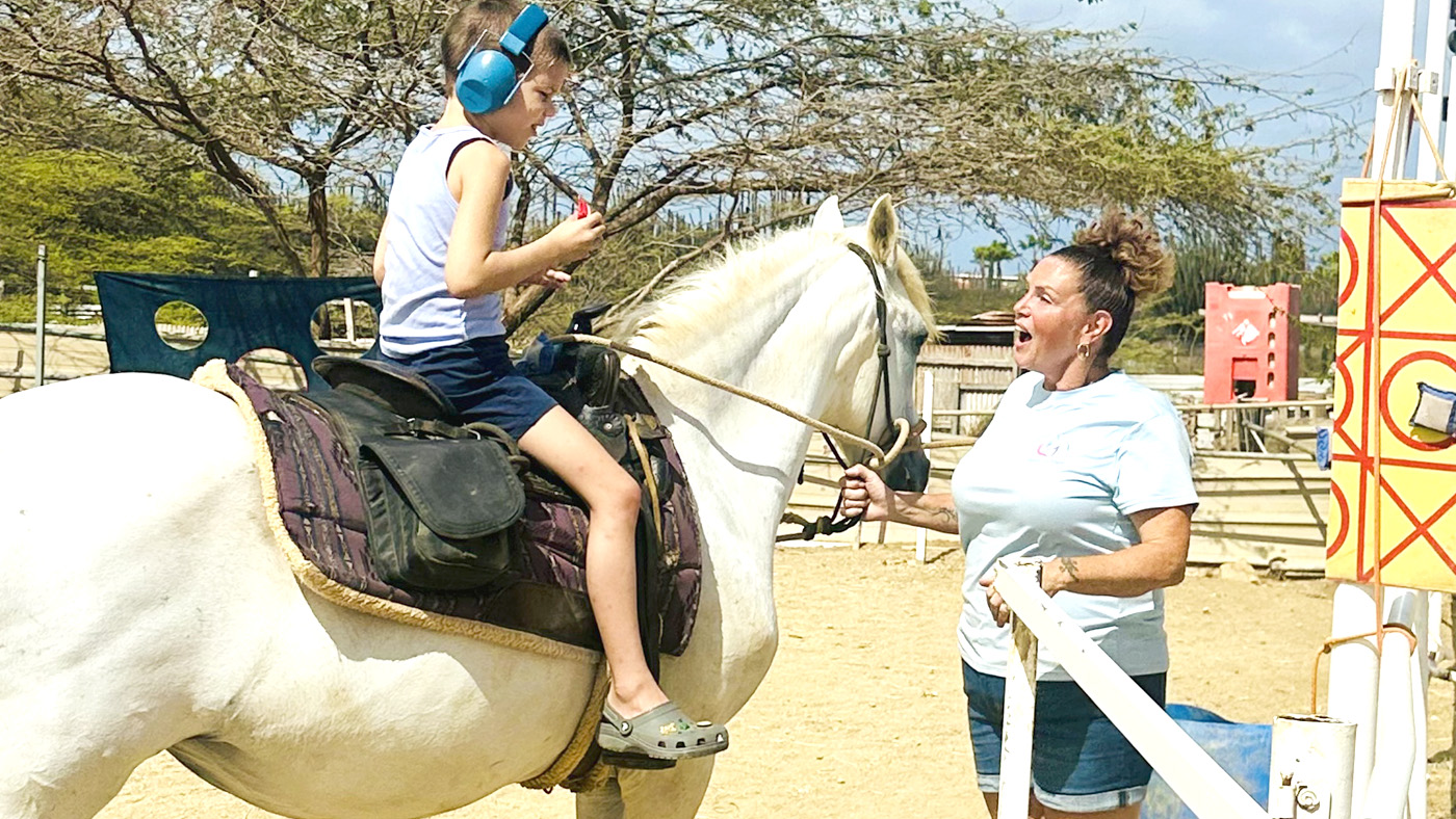 Union entre Hoofs of Hope y Sensory Gym Aruba ta un experiencia special di Hippoterapia pa muchanan cu autismo