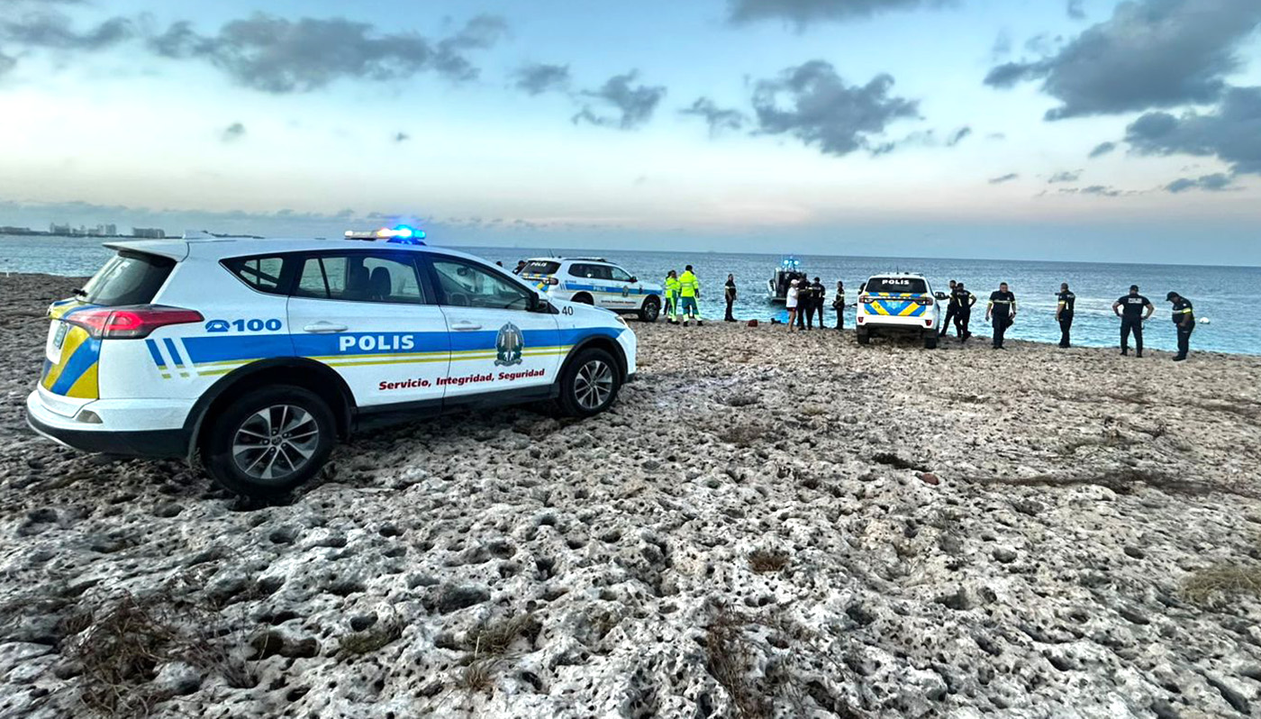 Central di Polis na su turno a pidi asistencia di Wardacosta di Caribe Hulandes, y nan a core manda un boto di reaccion rapido Metal Shark rumbo pa Malmok. Ora cu e personal di Wardacosta a yega, nan a haci algun palabracion, y di e forma ey hunto cu Polis a sambuya y a logra saca e curpa di e homber cu apariencia basta hoben for di e auto compacto, y bin halto cu ne.