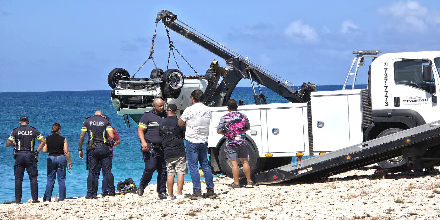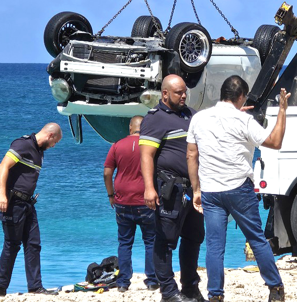 A busca servicio di e compania 2Fast4U Towing cu a bin cu un takelwagen heavy-duty. Cu yudansa di dos persona cu ta duik, y cu guia di Polis Maritimo cu a yega eynan cu nan boto BP-2, a rek e waya di takelwagen, y a pone algun cadena na e chassis di e auto. Asina a keda rek pa lastra e auto na suela, te cu el a sali for di awa, un poco prome cu merdia, pues despues di varios ora cu e caso a socede.